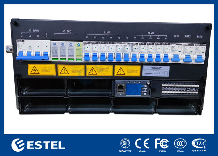 แผงจ่ายไฟ DC ติดตั้งเบรกเกอร์วงจรแบตเตอรี่ 3*125A/1P และมีฟังก์ชัน LLVD และ BLVD สำหรับการจัดการพลังงานที่ปลอดภัยและยืดหยุ่น ระบบอัจฉริยะจัดทำโดยคอนโทรลเลอร์เฉพาะที่มีอินพุตเซ็นเซอร์อะนาล็อก 4 ตัว, อินพุตสถานะดิจิทัล 8 ตัว และรีเลย์เตือนแบบหน้าสัมผัสแห้งที่กำหนดค่าได้ 8 ตัว การตรวจสอบและจัดการระยะไกลเปิดใช้งานผ่านอินเทอร์เฟซ RS232/485 และ SNMP ในขณะที่จอแสดงผล LCD ในตัวช่วยให้สามารถดูสถานะและการกำหนดค่าในพื้นที่ได้